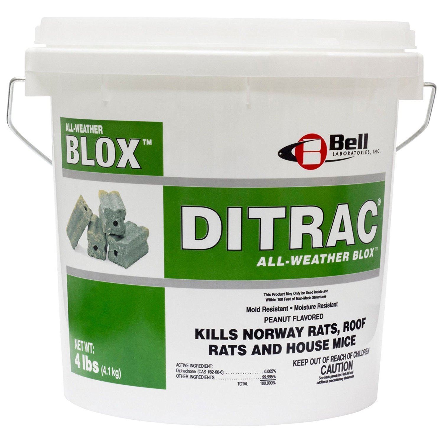 DITRAC All-Weather BLOX, with the active ingredient, Diphacinone, is an extruded rat and mouse bait that achieves outstanding control indoors and out. An excellent maintenance bait, DITRAC BLOX is manufactured from Bell's unique extrusion process that yields a hard, multiple-edged bait with the palatability of a meal bait and the weatherability of a paraffinized bait.